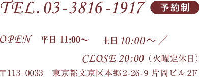 本郷三丁目のヘアサロン Ease Garden(イーズガーデン)はアトリエのような安らぐ空間。お客さま一人一人、丁寧に、ゆっくり過ごして頂けるよう努めております。
